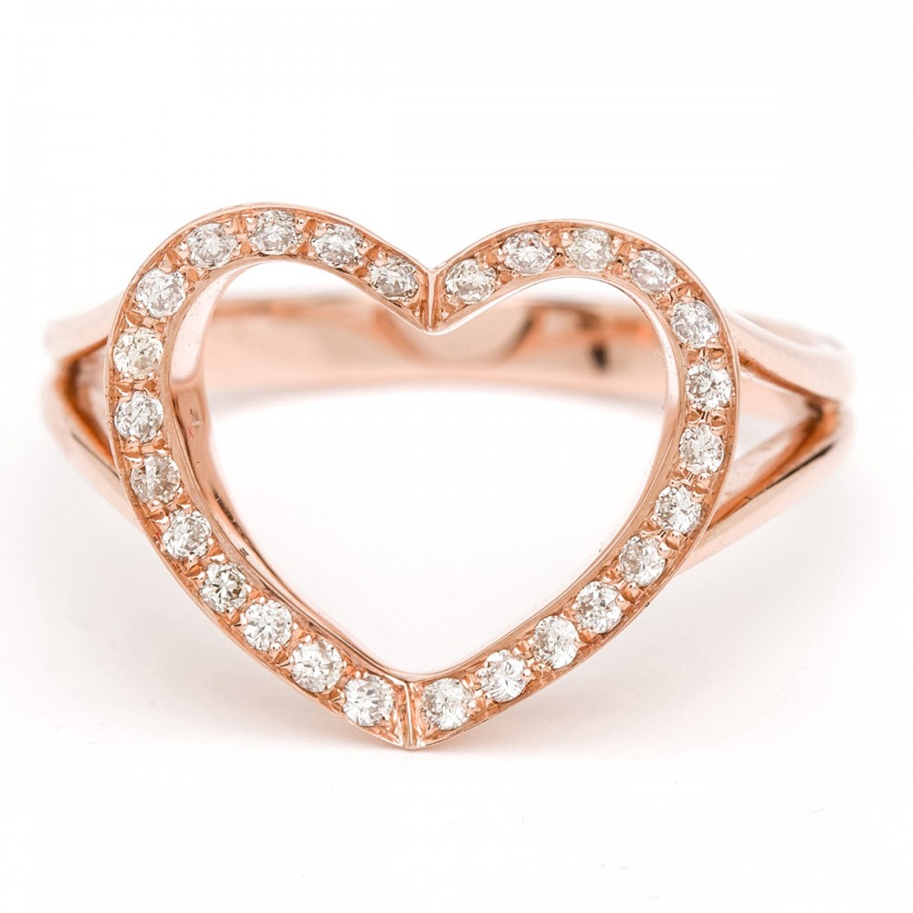 14K rose gold champagne diamond open heart ring