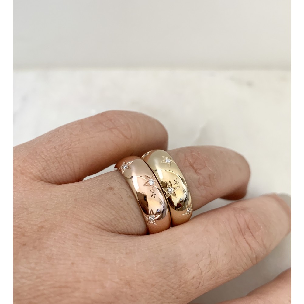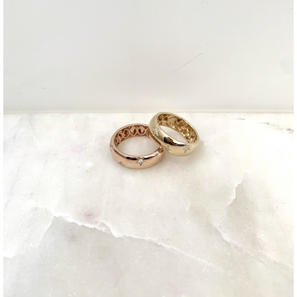 • Diamond star set gold band