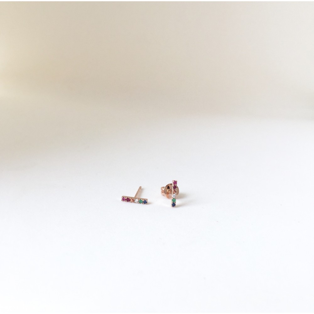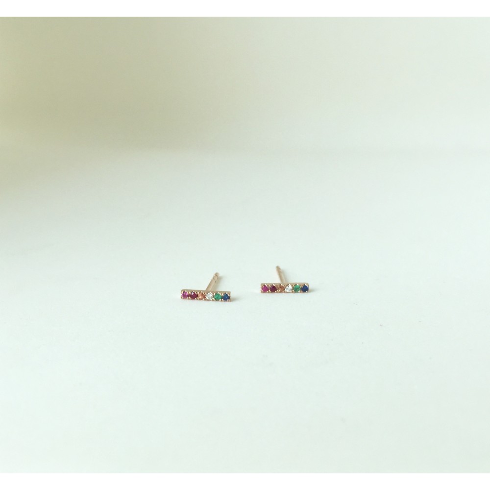 14K rainbow bar stud earrings