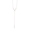 14K gold V diamond lariat necklace with double sided diamond hanging bar